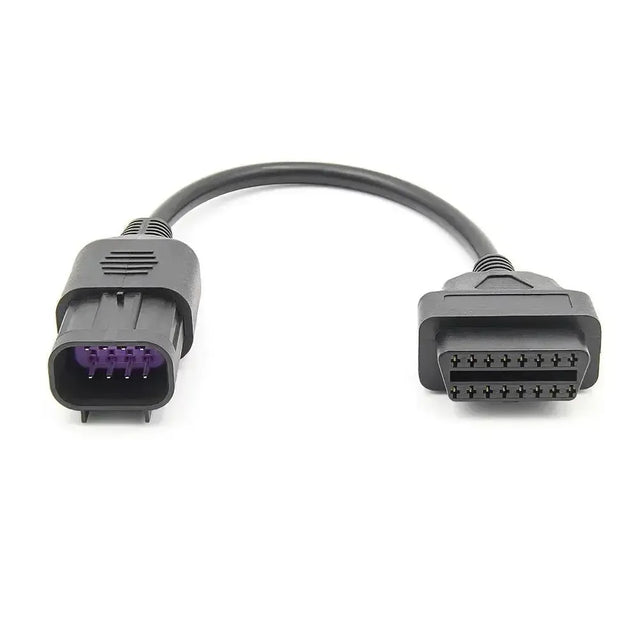 The Adapter Cable converts a Polaris 8-pin connector to a universal 16-pin OBD2 (J1962) port. This Adapter is designed to establish a connection between the vehicle's specific diagnostic port and a compatible OBD2 reading device. The cable is suitable for diagnostic applications on various quads, ATVs, and UTVs.