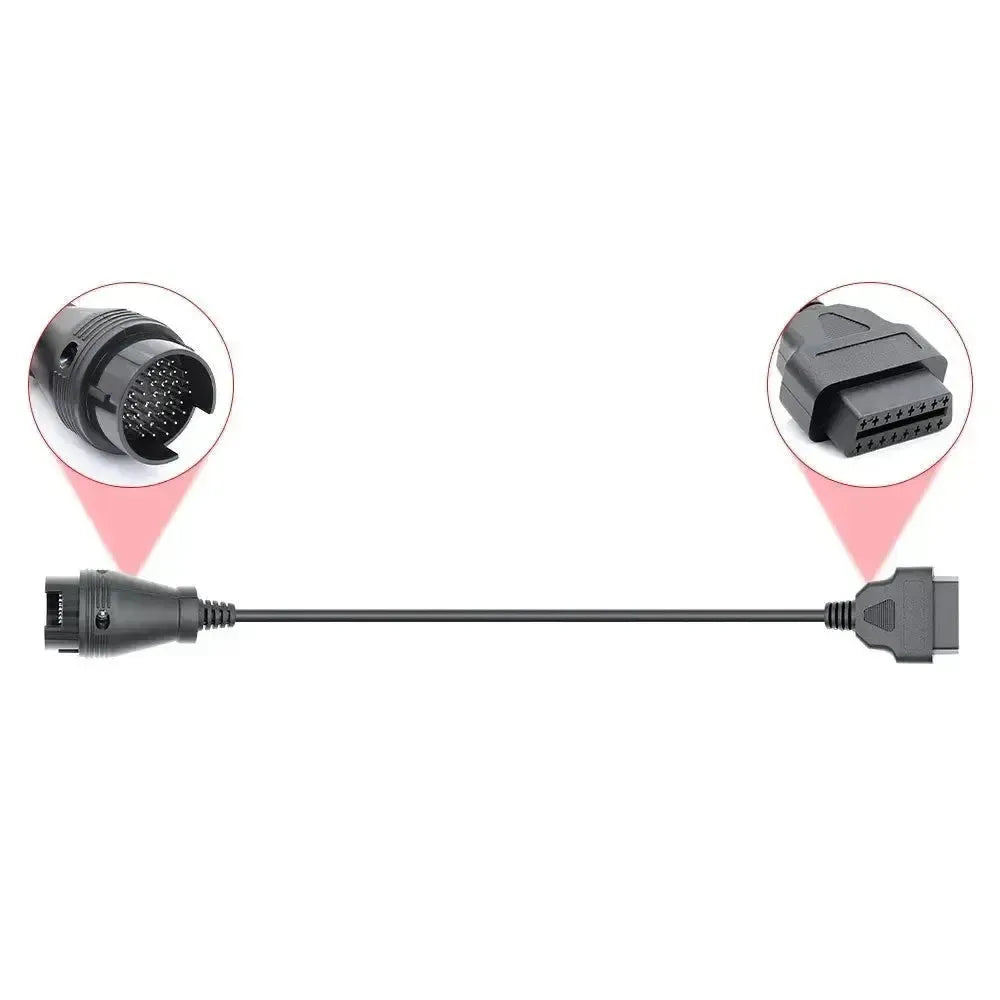 The Adapter Cable is designed to establish a connection between older Mercedes-Benz passenger cars and modern diagnostic equipment. The cable features a specific 38-pin OBD1 male connector on the vehicle side and a standardized 16-pin J1962 (OBD2) female connector on the adapter side. This makes it possible to read vehicles equipped with the older 38-pin diagnostic port using a common OBD2 reader.