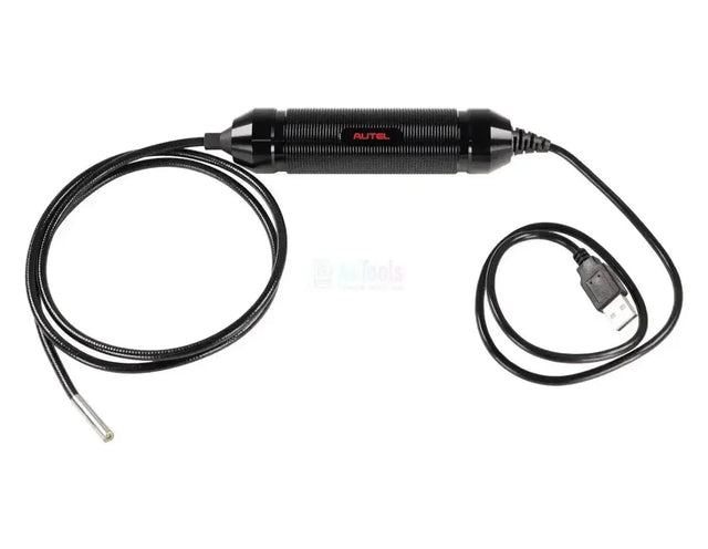 The Autel MaxiVideo MV105S is a digital inspection camera designed for visual inspections in hard-to-reach areas. This model is equipped with a camera head with a diameter of 5.5 mm, mounted on a semi-flexible, waterproof cable with a length of 1 meter. The camera connects via a USB cable to a compatible Autel diagnostic tablet or a Windows computer, which also provides power.