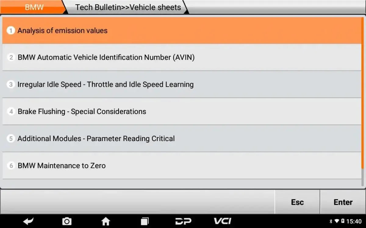 - Automatic scan: Performs a full scan of all present electronic systems.